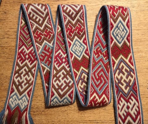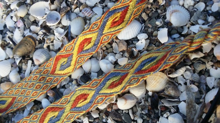 In the tablet weaving community we often talk about the “Snartemo technique”, which means using the effect of “floats” to create the pattern in the band. This basically means you let the threads stay on top of the band until the pattern with that colour ends.